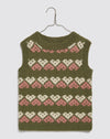 부드러운 메리노 울 소재로 하트 패턴이 돋보이는 특별한 손뜨개 탱크탑입니다. 어떤 옷 위에도 레이어드하기 좋습니다.